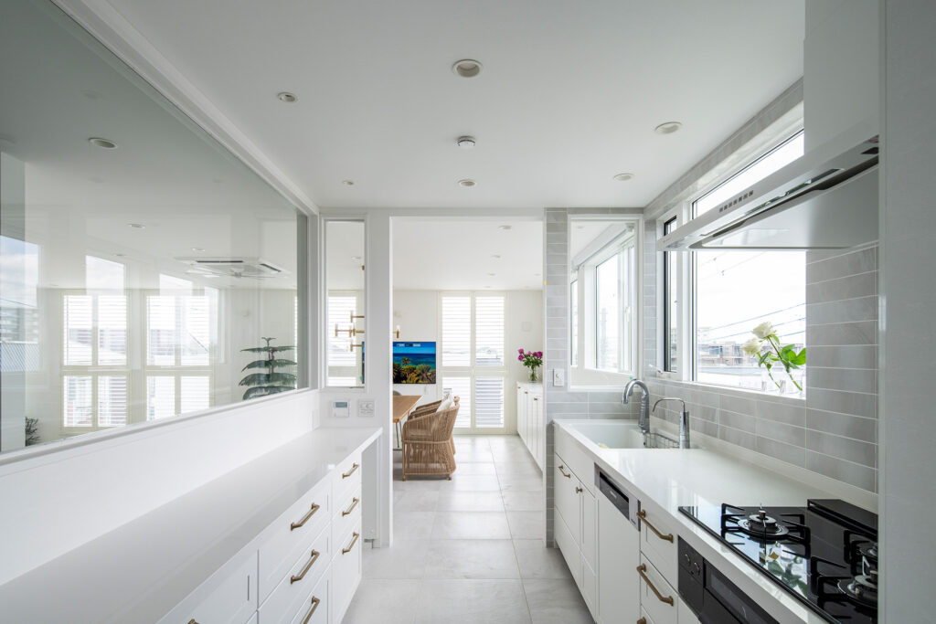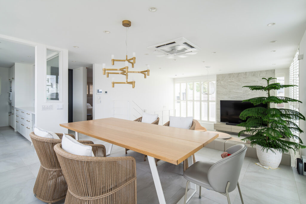 works 施工事例 HOME > 施工実績 > 清潔感あふれるこだわりいっぱいの家(注文住宅) 清潔感あふれるこだわりいっぱいの家(注文住宅) 2026.03.27 ダイニングとリビングはステップで区切り、キッチンはガラスで仕切り解放感を大事にしました ひとつひとつお施主様のこだわりがつまった素敵なおうちができました < 一覧へ